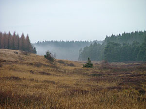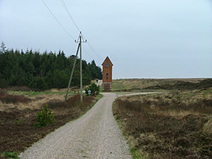 Man skal ikke skele til, at der kommer vejkryds, for dem skal man blot køre lige over. Det gælder Aspvej, Birkildevej, Bækvej o.s.v. På den måde ender man helt automatisk ved Møllesøen.Den vej man kører på, skifter navne, efterhånden som man nærmer sig Møllesøen. I Linde, hvor man drejer fra rute 509, starter vejen med at hede Bautastenene. 50 mtr længere fremme ændres navnet til Rødebrovej. Når kilometertælleren har rundet de 16 km fra campingpladsen, ophører asfalteringen. Vi skal blot fortsætte ligeud af grusvejen, som nu har skiftet navn til Gl. Landevej. Når man passere en rød el-transformatortårn (Tårnvej) på venstre side, er vi ved at være tæt på målet. En lille kilometer mere i en dalsænkning er vi ved søen. Vi svinger ind på parkeringspladsen (Jagtvej) Ved Møllesøen er der rigeligt med bænke og borde, så man kan med sindsro tage kaffe og mad med, som man kan indtage før eller efter en lille vandretur. Der er sågar bålpladser og brænde tilgængelig for publikum. Dog skal man selv medbringe ild og optændingsbriketter. Man vil snart erfare, at man havner i et utroligt fredfyld og idyllisk område Men man er til gengæld ikke i tvivl om, at der findes bævere her... og vandstæren!! Lige ved parkeringspladsen, er der opstillet et kort over området med forslag til forskellige vandreture. Men hvis man ikke vil ud på de små skovstier, kan man følge Jagtvejen (startende med gul rute). Holder man sig på jagtvejen kommer man på et meget varierende naturområde, uden risiko for at man farer vild. Nå man når skiltet "Den sandede Brandvej" kan man i modsat retning se et stort Jagttårn. Prøv at gå op i tårnet og man får et pragtfuld udsyn over en lille sø og hedearealer. Fortsæt ud af Jagtvej til du når Tårnvej, hvor du skal dreje til højre (langs højspændingsledningerne) ned til den transformatortårn, som du passerede på vejen mod Møllesøen. Her skal du dreje til højre (Gl. Landevej) og tilbage til Møllesøen. Denne lille vandretur tager en times tid og er anbefalelsesværdig. Se billeder fra ruten herunder. Gå af Jagtvejen og tag en lille afstikker til jagttårnet overfor "Den Sandede Brandlinie" og fortsæt derefter ud til Tårnvej, hvor elmasterne viser vejen tilbage mod højre.... For enden af Tårnvej svinger vi mod højre ... og kan nyde resten af naturen til P-pladsen