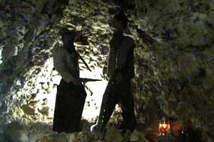 I de inderste gange er der ingen lys. Men der er lagt stearinlys frem til fri afbenyttelse, så man kan besigtige de inderste kroge og gå ned i "kælderen" 60 meter under jorden.