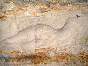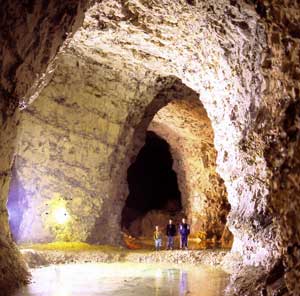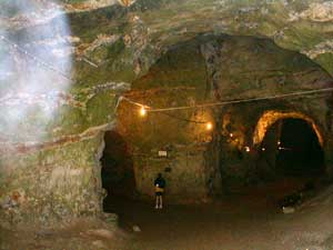 Men følger man den oplyse gang kommer man ind i huler så store som domkirker og ind smalle gange hvor en voksen mand ikke kan stå oprejst. Det er en verden som skal opleves på nær hold. Det er en fantastisk oplevelse.Den "ukendte" model overses af de fleste besøgende. Hun er hugget ud i kalken lige ved indgangen til gruberne. (1. venstre gang lige inden for porten)