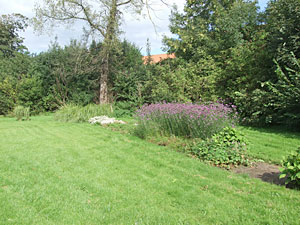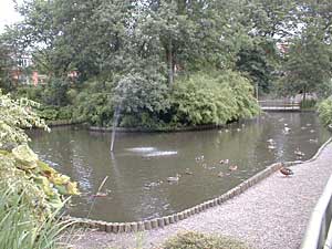Beplantningen igennem parken er lidt speciel. Man har sat blomsterbedene i slyngninger, så det ligner å-løb. Spændende nytænkning!!!! Til sidst når man frem til anlæggets andedam, som tiltrækker både børn og voksne. Det er tydeligt at ænderne er fortrolige med de passerende og svømmer imod en, i forventning om godbidder. |