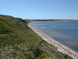 men under alle omstændigheder i nærheden af HumlaLæs mere om Vikingetiden under Bremdal-lokal (lokalhistorie) Badevandet er godt i Toftum Bjerge og stranden skråner blidt ud, så også små børn uden risiko kan bade i strandkanten. De voksne må lidt længere ud før det bliver dybt nok.