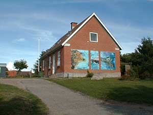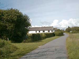 Herefter går man tilbage imod kirken igen ad den blå rute, har man lidt mere tid, så tag et lille smut af den gule rute forbi Borbjerggaard. Nogle få hundrede meter før vi når frem til parkeringspladsen ved kirken passerer vi Venøs nye Efterskole med plads til godt 80 elever i 9. og 10 klasse.