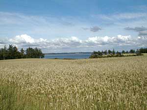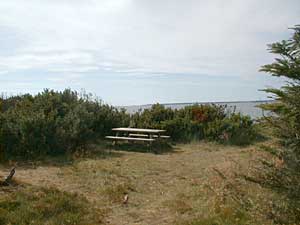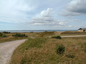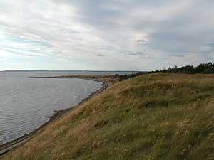 Har man fået lyst til en ekstra og ganske lille vandretur inden hjemturen, kan man anbefale at tage den violette rute (rute 5) fra parkeringspladsen imod venø by og ned langs stranden imod syd, men man skal op på den sti der findes oppe på skrænterne og den sti er ikke afmærket særlig godt og svært at finde vej til uden at krydse diverse private grunde. Kan man ikke finde stien, så må turen i stedet gå langs stranden og finde et passende sted at klatre op. Men så er udsigten også aldeles fortræffelig. Venstre billede er taget fra skrænterne mod nord, imod Venø by og billedet til højre er taget ned imod færgelejet På tilbagevejen kan man slå et lille smut ned til den østre strand (9) og nyde udsigten imod øst.