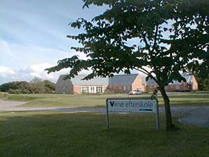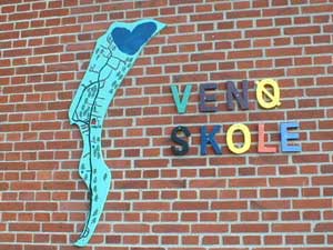 Venø's lille skole og børnehave, som ligger ganske tæt på parkeringspladsen, havde ca 10-15 elever fordelt fra børnehaveklassen op til 4. klasse og som det eneste sted i landet fungerer præsten på øen også som skolelærer.