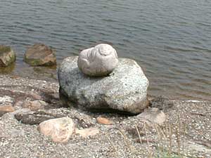 "De tre hovedsten" af Henrik Hadsund Opstillet ved indgangen til Gimsinghoved |