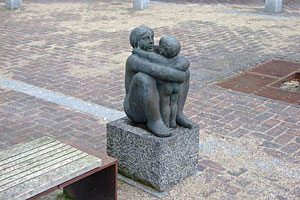 "Omfavnelse" af Erik Poulsen 1981 Ses på hjørnet af Søndergade og Tegltorvet |