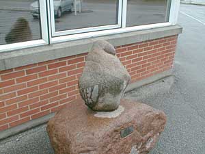 Vi går nu tilbage og videre op af Bredgade til vi kommer til Falck Stationen hvor man ser en af Jens Stopperups skulpturer. "Pingvinen" af Jens Stobberup som blev skænket til stationen af personalet ved Falck stationens indvielse 21/8 1991 |
