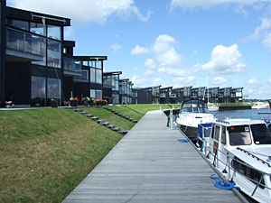 Strandparkens bygninger er aldeles iøjnefaldende. Men se lige engang til venstre og nyd synet af Sejlhusende, som er vist herunder. |