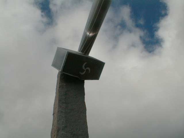 I højre side af vejen er der sat et sværd i jorden med indskriptionen "Kamp må der til, skal livet gro"