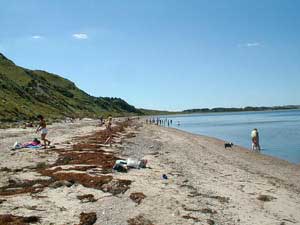 men under alle omstændigheder i nærheden af HumlaLæs mere om Vikingetiden under Bremdal-lokal (lokalhistorie) Badevandet er godt i Toftum Bjerge og stranden skråner blidt ud, så også små børn uden risiko kan bade i strandkanten. De voksne må lidt længere ud før det bliver dybt nok.