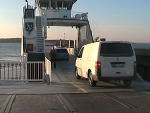 En lille færge transporterer gæsterne til øen fra "Kleppen". Det tager 2 minutter. Færgen sejler hver 20 min fra kl 7.00 til kl 20.00, derefter hver halve time til midnat.